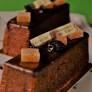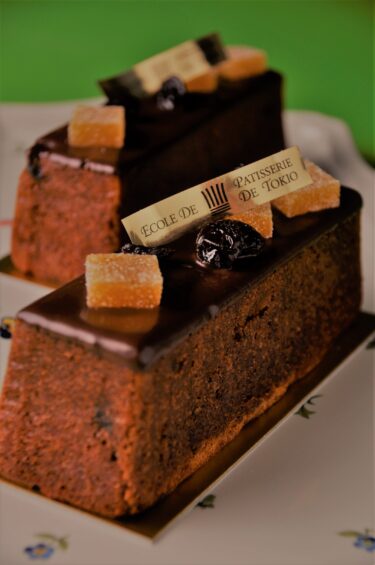 1.パータ・グラッセ・ブリュンヌとスィートチョコレートを40℃に溶かす。